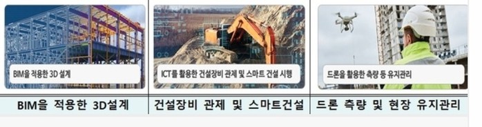 또한, 정보통신기술(ICT) 기반의 스마트 안전관리를 통해 건설현장의 유해‧위험요인을 사전에 발굴·차단하고, 3D BIM 기반의 패키지형 시범사업을 도입해 안전한 도시로 건설한다.