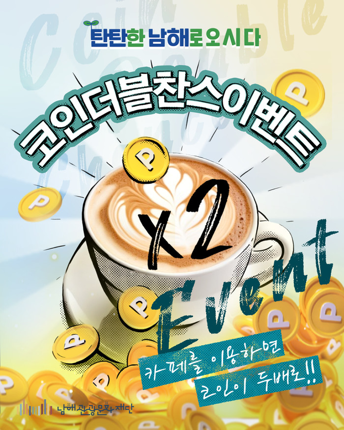 이번 이벤트는 남해군 내 참여 카페를 이용하고 개인컵 사용 등 친환경 활동을 실천한 관광객에게 기존 적립액의 두 배에 해당하는 ‘탄탄코인’을 지급하는 내용이다. QR코드 적립 시 자동으로 적용되며, 적립된 코인은 다양한 친환경 리워드로 교환 가능하다.