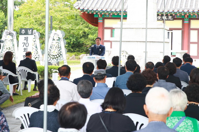 [전남=레스뉴스] 박정철 기자=곡성군(군수 조상래)이 지난 6일 충의공원 충의탑에서 제70회 현충일 추념식을 거행하고, 순국선열과 호국영령의 숭고한 희생정신을 기렸다.