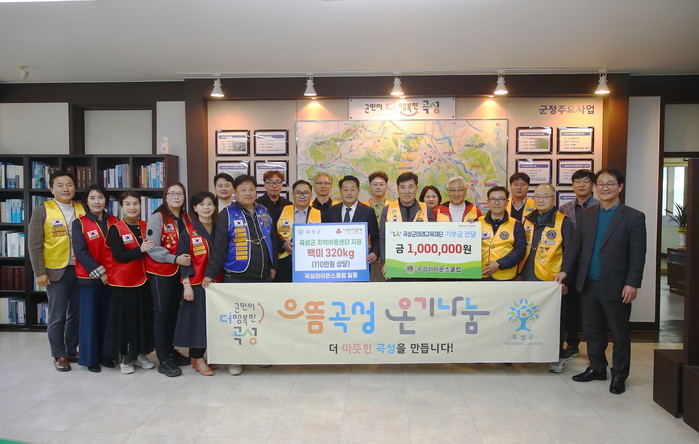 곡성군라이온스클럽(회장 유도열)은 지난 22일, 곡성군 지역아동센터에 110만원 상당의 백미 320kg를 기탁, 곡성군미래교육재단에는 100만 원을 기부했다.