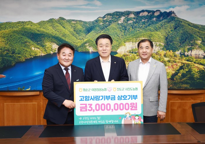 강성민 서진도농협 조합장도 “이번 상호기부를 통해 화순과 진도가 함께 성장하는 계기가 되기를 기대한다”라며, “두 농협 간 꾸준한 협력을 통해 지역사회에 더욱 기여하겠다”라고 밝혔다.