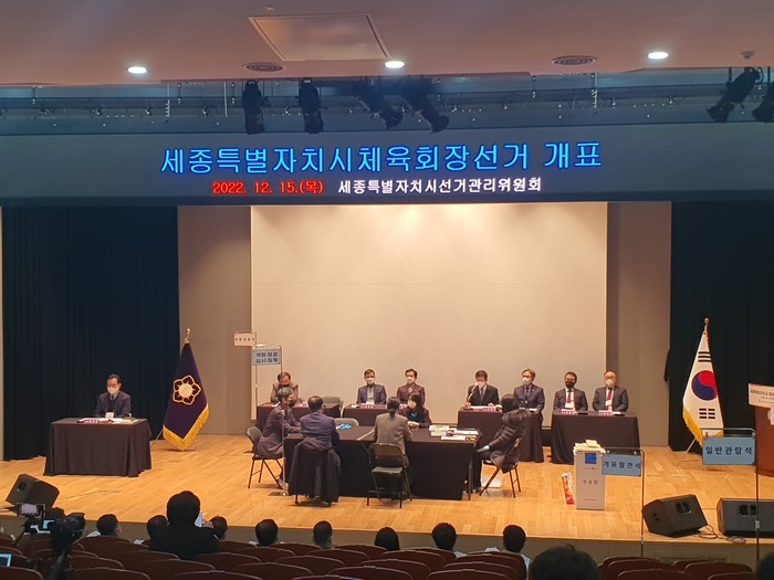 ▲15일 세종시 체육회장 선거 개표가 진행되는 현장(사진=김교연기자) |