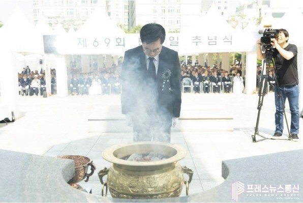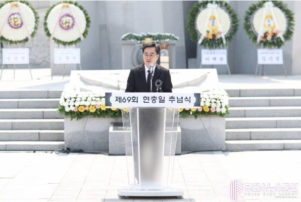 [프레스뉴스] 장현준 기자= 김동연 경기도지사는 6일 오전 수원 현충탑에서 열린 제69회 현충일 추념식에서 “오랜 세월 우리가 추구했던 민주주의의 꿈, 평화의 꿈이 위협받고 있다”면서 “선열들의 피와 땀으로 이룬 대한민국의 자유와 평화를 진전시키는 것이야말로 진정으로 그분들의 헌신에 보답하는 길”이라고 밝혔다.