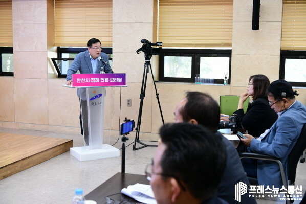 | ▲ 17일 안산시청 제1회의실에서 열린 정례브리핑(오상근 보건소장)사진=안산시 |