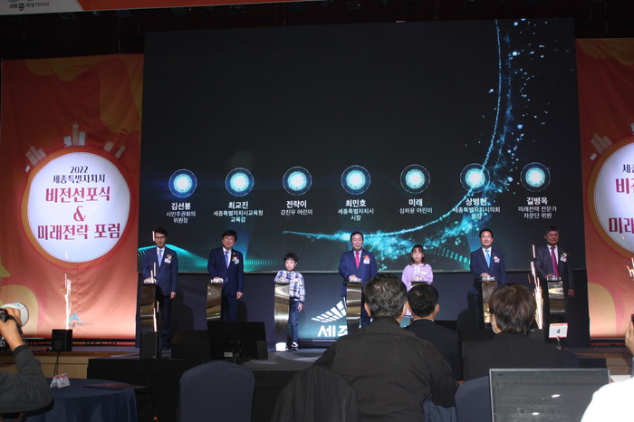 이날 비전선포식에서는 미래전략자문단 22명을 위촉했으며 상병헌 시의장, 최교진 교육감, 기관·사회단체장, 시민대표 등 300여 명이 참석한 가운데 미래전략수도 세종의 비전을 시민들과 공유하기 위해 마련됐다.