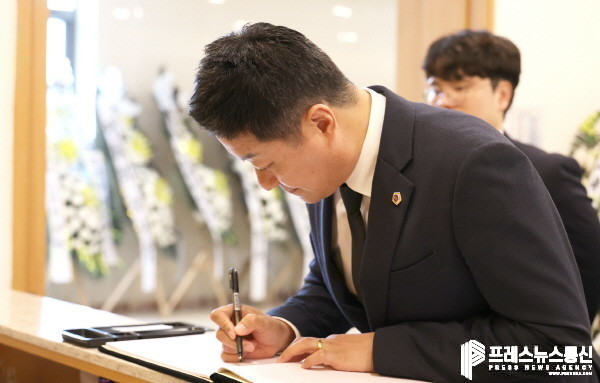 김 의장은 조문록에 “진정한 사과, 온전한 명예 회복의 꿈을 이어가겠습니다. 영면하소서”라는 추모의 글을 남겼다.