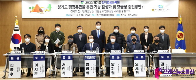 [프레스뉴스] 김대일 기자= 경기도의회 도시환경위원회 임창휘 의원(더불어민주당, 광주2)이 주제발표와 좌장을 맡은 「경기도 행정통합을 통한 기능 활성화 및 효율성 증진방안 정책토론회」가 12월 8일(목) 경기도의회 대회의실에서 개최됐다. 이번 토론회는 경기도와 경기도의회가 공동으로 주최하는 ‘2022 경기도 정책토론대축제’ 일환으로 열린 토론회다.