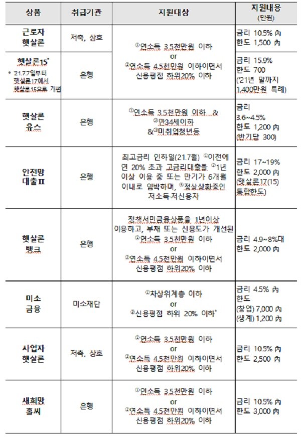 또 새로운 정책서민금융상품(안전망 대출Ⅱ, 햇살론15, 햇살론뱅크·카드) 공급을 통해 서민의 금융이용 어려움도 다각도로 보완할 방침이다.