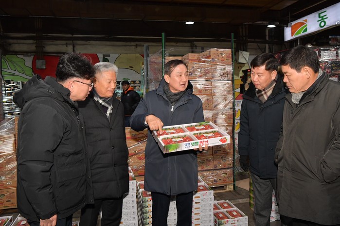 이날 이병노 담양군수는 관련 부서 공무원들과 군의회, 지역농협, 도매시장 출하 작목회원 30여 명과 함께 농산물 경매를 참관하고 주요 도매법인과 간담회를 진행했다.