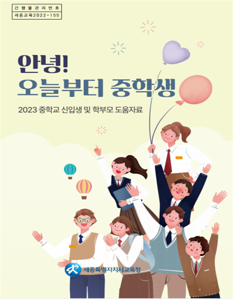 ▲시교육청은 26일 23학년도 중학교 입학 예정인 신입생과 학부모의 교육활동에 대한 이해도를 높이기 위한 ‘안녕! 오늘부터 중학생’ 도움 자료를 개발·보급했다고 밝혔다.(사진=세종시교육청) |