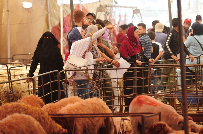 [프레스뉴스] 채정병 특파원=9일(현지시간) 이슬람권 최대 명절인 이드 알 아드하(희생제) 첫날, 요르단 암만의 한 양시장에서 한 고객이 양을 가리키고 있다.