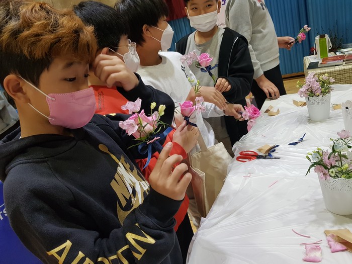 ▲전의초 학생들이 플로리스트 직업체험에 참여하고 있다(사진=세종시교육청) |