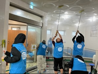 기동대원들은 주말에도 불구하고 자발적으로 지역 주민들이 쾌적한 환경에서 공중목욕장을 이용할 수 있도록 천장의 곰팡이와 얼룩 제거 등 이웃사랑을 실천했다.