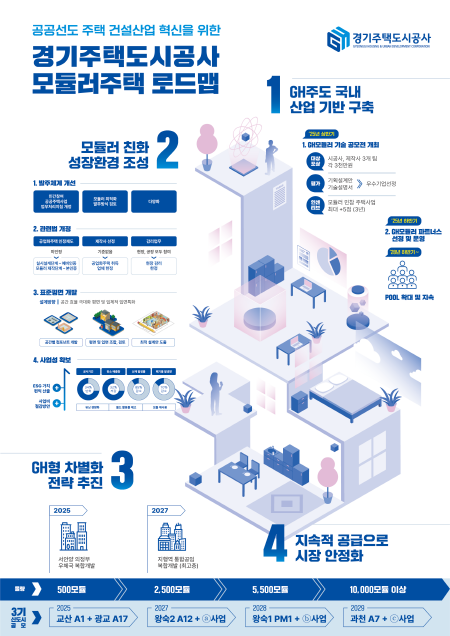 이와 함께 GH는 국내 모듈러산업 기반 구축 및 성장환경 조성을 위해 2025년 상반기중 모듈러 기술공모전을 열어 ‘모듈러 파트너스’를 선정할 계획이다.