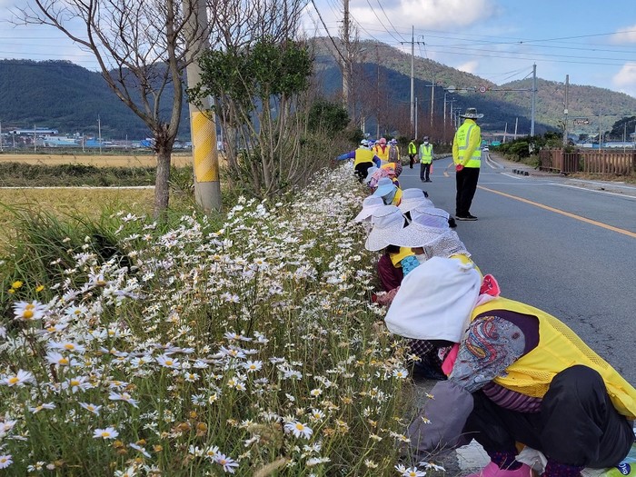 임자면 노인일자리사업 참여자 구절초 꽃길 3km 조성