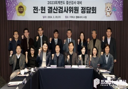 | ▲20일 수원 이비스앰버서더 리옹홀에서 2023회계연도 결산검사의 선제적 준비를 위해 전·현 결산검사위원이 참여하는 정담회를 개최했다.(사진= 경기도의회) |