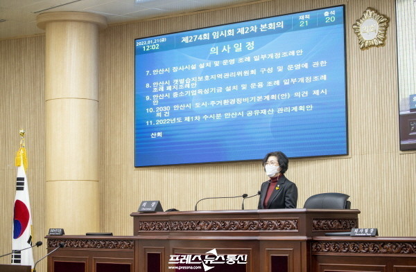 또 기획행정위원회와 문화복지위원회, 도시환경위원회의 공통 안건인 ‘2022년도 제1차 수시분 안산시 공유재산 관리계획안’은 당초 집행부 안에서 토지 매각 사업의 건을 삭제하는 것으로 수정 의결됐다.