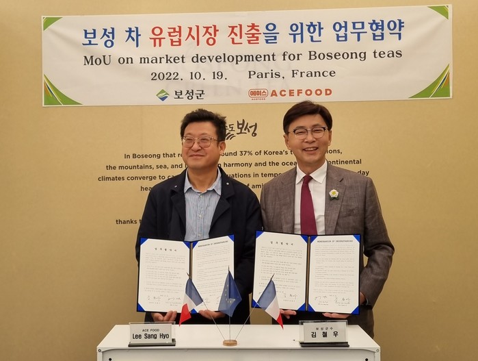 이날 MOU는 프랑스식품박람회에 참가한 보성군 차생산자조합 홍보관에서 진행됐으며, 주요 내용은 보성 농특산물의 유럽시장 내 유통 판매와 문화교류 사업 협력 등이다.