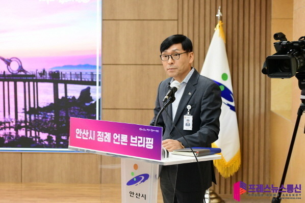 | ▲ 17일 안산시청 제1회의실에서 열린 정례브리핑(전덕주 행정국장)사진=안산시 |