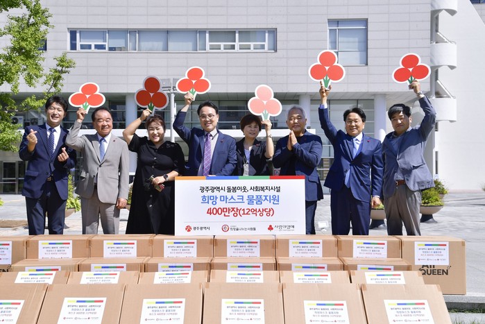 (사)희망을나누는사람들은 코로나19 재확산에 따른 위기극복을 위해 마스크 400만장을 기부했다. 전달된 마스크는 광주사회복지공동모금회를 통해 5개 자치구와 노인, 장애인, 아동, 청소년, 다문화 등 돌봄이웃과 사회복지시설에 배분될 예정이다.