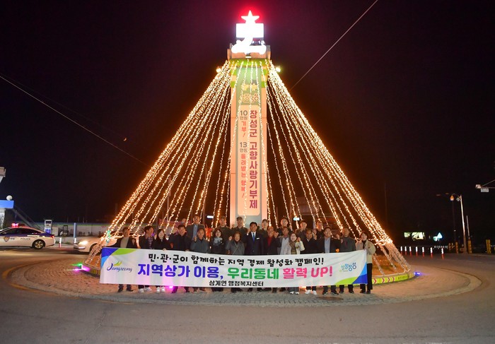 | ▲장성군 삼계면이 24일 면시가지 회전교차에서 ‘성장장성 트리’ 점등식을 가졌다.(사진제공=장성군) |