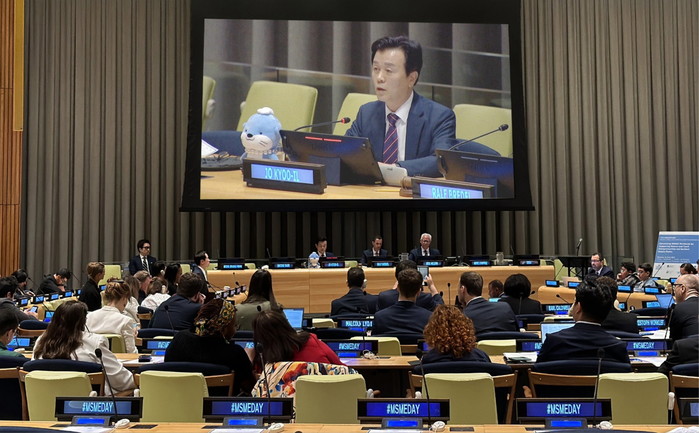 6월 27일 뉴욕 UN 본부에서 열린 ‘UN 중소기업의 날(UN MSME Day)’ 행사에 조규일 시장이 ‘대한민국 기업가정신의 수도, 진주’를 주제로 기조연설을 했다.
