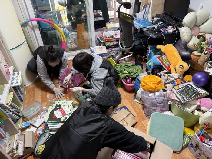 | ▲정리수납 재능기부 활동하는 모습(다문화 가정)(사진제공=화순군) |