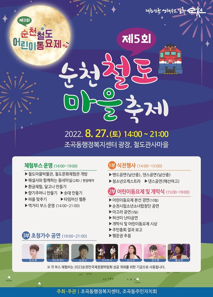 코로나로 3년 만에 열리는 축제는 ‘내일(rail, 未來)로 가는 기적소리’라는 주제로 조곡동행정복지센터 광장과 철도운동장 일원에서 펼쳐진다.
