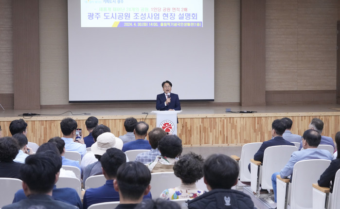 광주광역시(시장 강기정)는 30일 염주체육관 내 올림픽기념국민생활관에서 ‘새롭게 태어난 24개 공원’을 주제로 현장설명회를 개최했다.