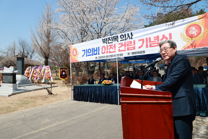 ▲의령군은 4월 2일, 지정면 출신 독립운동가 박진목 의사를 기리기 위한 기의비 이전 건립 기념식을 성황리에 개최했다. (사진=의령군) |
