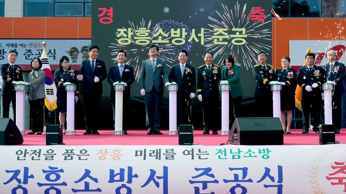 이날 준공식에는 김영록 전남도지사, 김승남 국회의원, 김화진 국민의힘 전남도당 위원장, 김성 장흥군수, 윤명희·박형대 전남도의원, 왕윤채 장흥군의회 의장 등 150여 명이 참석해 장흥소방서의 출발을 응원했다.