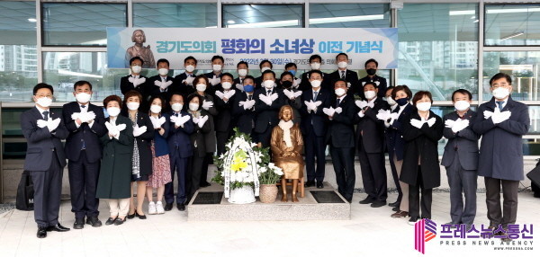 이어 “경기도의회 평화의 소녀상은 단지 아픈 과거만 보여주는 것이 아니라 희망찬 미래를 그려내는 시작을 상징하는 조형물”이라면서 “경기도의회는 오늘 광교 신청사에 다시 놓인 평화의 소녀상과 함께 새로운 미래를 시작하겠다”라고 밝혔다.