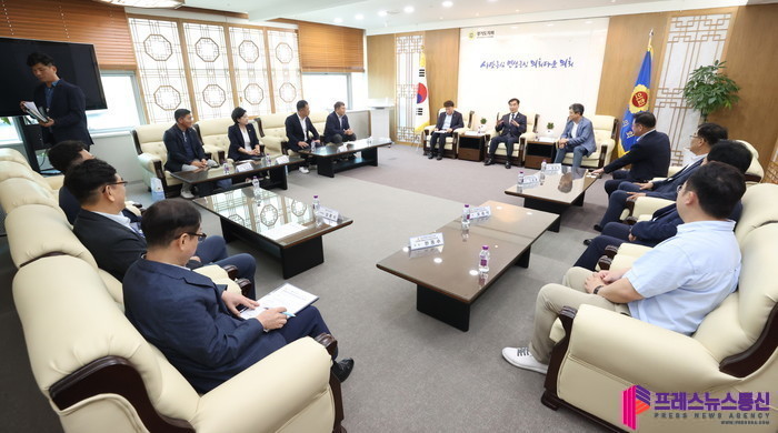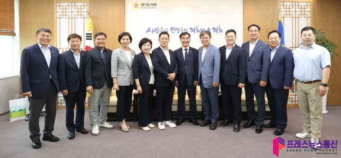 [프레스뉴스] 김대일 기자= 염종현 경기도의회 의장이 21일 도의회를 방문한 제주특별자치도의회 균형발전특별자치입법정책포럼 소속 위원들을 접견했다.