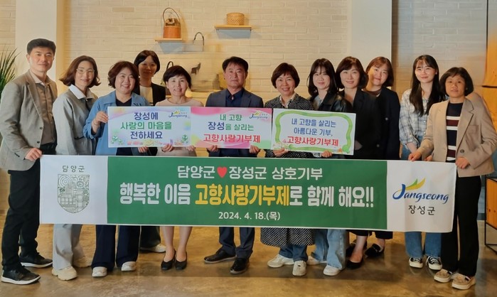 [전남=프레스뉴스] 박정철 기자= 전남 담양군 향촌복지과와 장성군 가족행복과 직원들이 지난 18일 고향사랑기부금 상호기부에 자발적으로 동참하며, 상호기부를 통한 제도의 성공적인 정착과 서로의 지역발전을 응원했다.