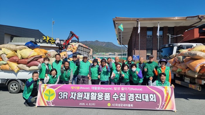 [전남=프레스뉴스] 박정철 기자=(사)곡성군새마을회(회장 김영종)에서는 4월 8일 관내 읍면 새마을지도자 560여명이 참여한 가운데 「재사용(Reuse) 재활용(Recycle) 발생 줄이기(Reduce)」 범 군민 3R 재활용품 수집 경진대회를 군민회관 광장에서 실시하였다.