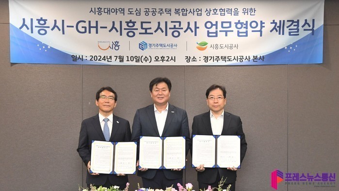[프레스뉴스] 장현준 기자= 시흥시(시장 임병택)는 10일 경기주택도시공사(이하, ‘GH’) 본사에서 GH 및 시흥도시공사와 ‘시흥대야역 도심 공공주택 복합사업 상호협력을 위한 업무협약’을 체결했다. 이번 협약식에는 임병택 시흥시장, 김세용 GH 사장, 정동선 시흥도시공사 사장 등이 참석했다.