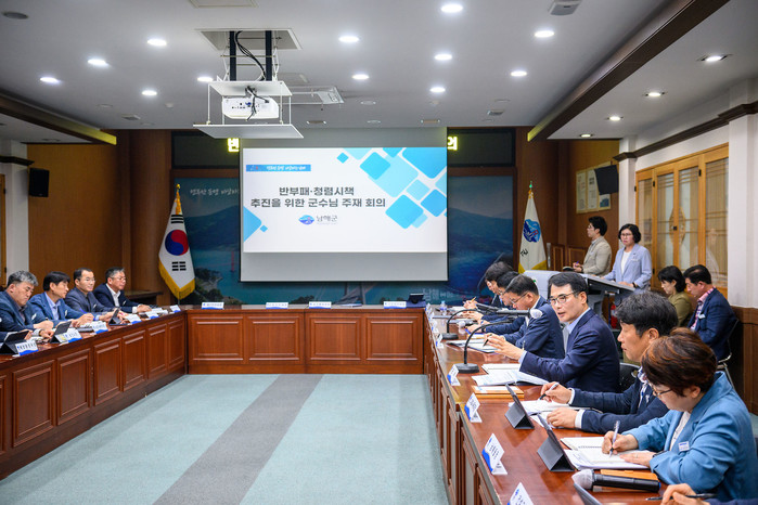[프레스뉴스] 정재훈 기자= 남해군은 지난 15일 군청대회의실에서 장충남 군수가 직접 주재하는 ‘반부패와 청렴시책 추진을 위한 공유회의’를 개최했다.