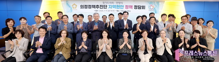 [프레스뉴스] 류현주 기자= 경기도의회 의정정책추진단은 11일 안양시 회의실에서 ‘지역 현안 정책 정담회’를 열고 안양지역의 주요 정책 현안과 경기도의회 차원의 지원방안을 논의했다.