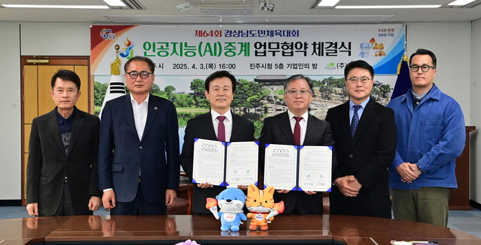 진주시는 3일 시청 기업인의 방에서 스포츠 AI 중계업체인 ㈜호각(HOGAK)과 업무협약(MOU)을 체결하고, 대회 기간 동안 인기 종목 경기를 진주시 공식 유튜브 채널을 통해 AI 생중계 및 다시보기를 제공할 계획이라고 밝혔다.