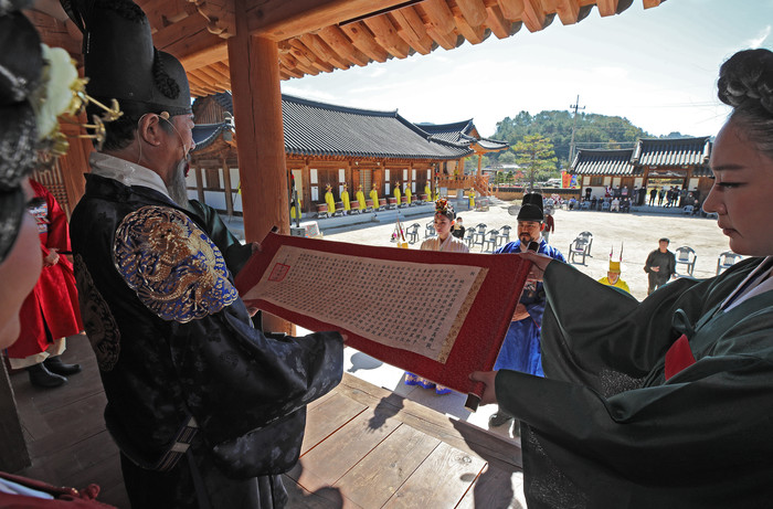 [프레스뉴스] 정재훈 기자= 조선시대 개국공신교서인 국보 ‘이제 개국공신교서’의 사여식이 세련된 감성으로 재현된다.