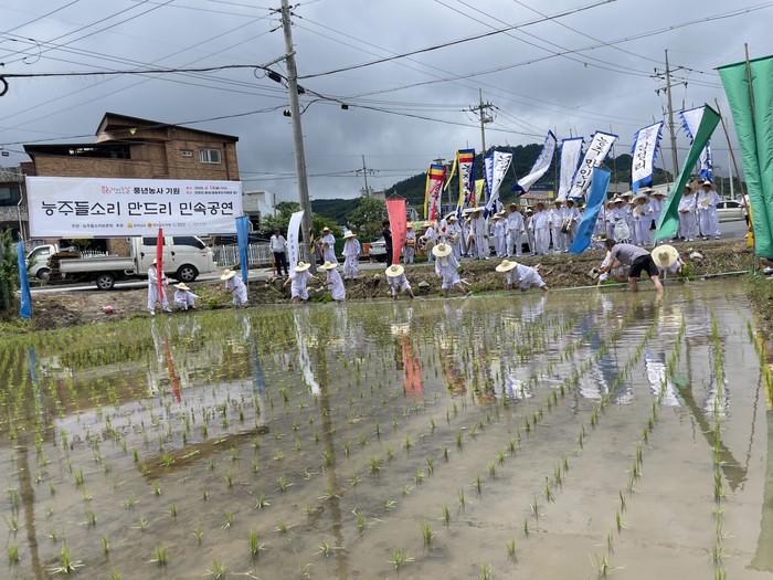 모내기 공연은 능주농협 로컬푸드 옆 논을 무대로 논 고사 후, 주민들이 직접 모를 심는 상사 소리를 시작으로 흥겹게 진행되었다.