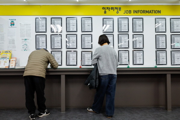 | ▲12일 마포구 서울서부고용복지플러스센터를 찾은 시민들이 일자리정보 게시판 앞에서 서류를 작성하고 있다.(사진=뉴스1) |