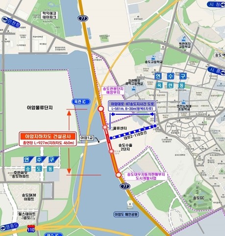 ▲ 인천시 송도 아암대로, 지하차도 공사로 12월 18일부터 왕복4차로 축소 운영 |