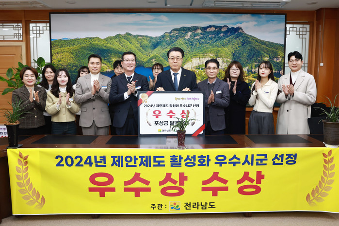 [전남=프레스뉴스] 박정철 기자=화순군(군수 구복규)은 27일 전라남도에서 주관한 ‘2024년 제안제도 활성화 평가’에서 우수상을 수상했다고 밝혔다.