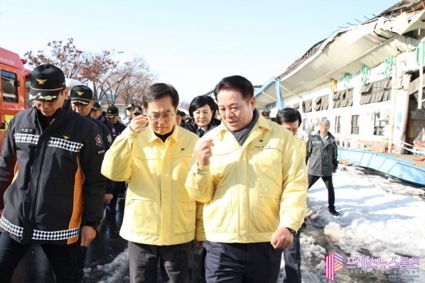 최 시장은 같은 날 오전 8시35분 농수산물도매시장에 방문해 안전 조치를 지시했으며, 곧바로 제설작업이 이뤄지고 안전통제가 지속됐다. 이후 오후 12시경 청과동 지붕 붕괴가 시작됐으며, 이 사고로 60대 이용객 1명이 경상을 입었다.