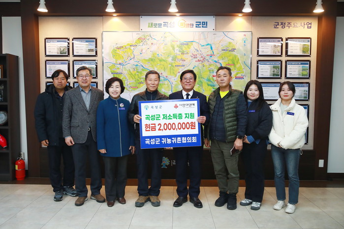 조상래 군수는 “곡성군 귀농귀촌협의회의 지속적인 기부는 지역사회에 긍정적인 영향을 미치는 귀감”이라며 “사람과 사람, 지역과 지역을 잇는 든든한 다리가 되어 앞으로도 많은 군민에게 희망을 전해주길 바란다”라고 감사의 뜻을 표했다.