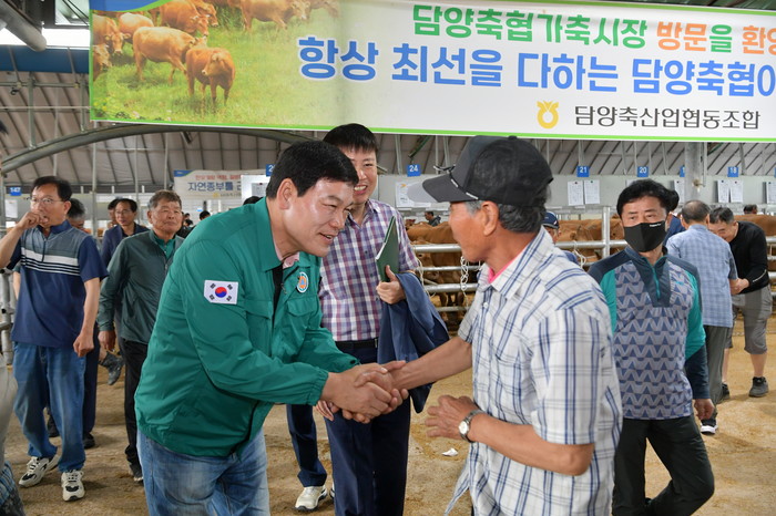 이날 가축시장에는 정 군수를 비롯해 강종문 담양축협조합장 등이 참석했으며, 264마리의 한우가 경매에 부쳐졌다.