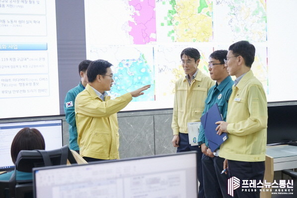 [프레스뉴스] 장현준 기자= 김동연 경기도지사가 1일 여름 휴가 복귀 후 첫 공식일정으로 도청 재난안전상황실을 방문해 폭염 대책을 점검하고 관계자들을 격려했다.