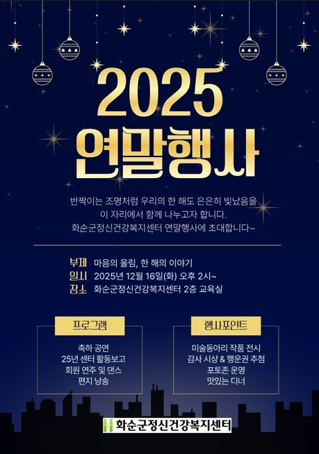 | ▲2025년 화순군정신건강복지센터 연말 행사 안내 포스터(사진제공=화순군) |