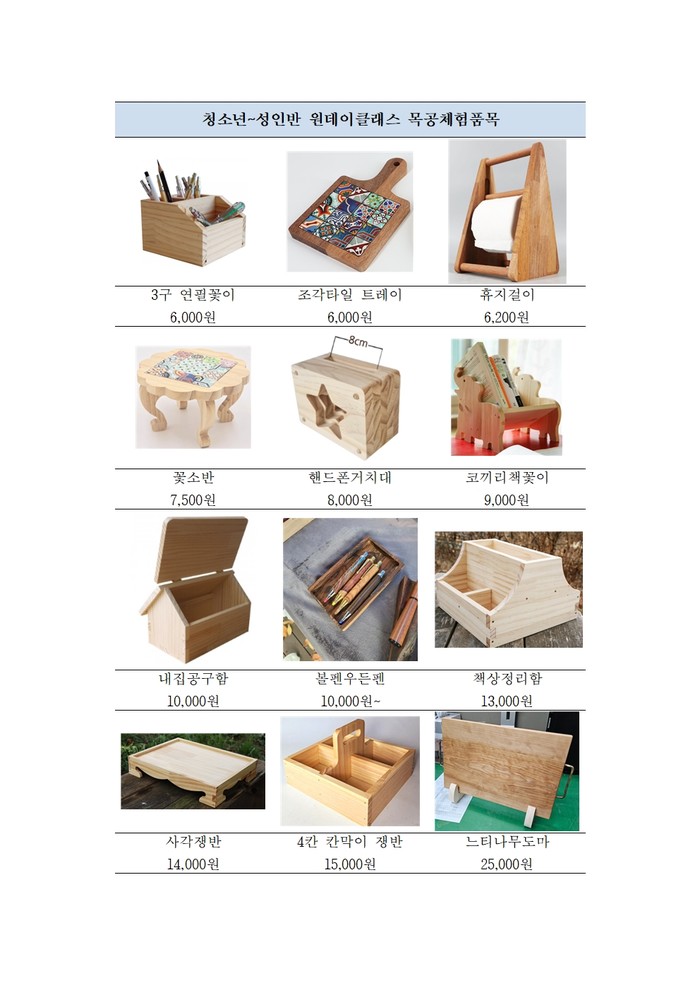 성인 프로그램은 평소 다룰 일이 없는 목재를 활용하여 실생활에서 유용하게 사용할 수 있는 생활소품을 직접 만들어 보는 기회를 가질 수 있어 기대를 모으고 있다.